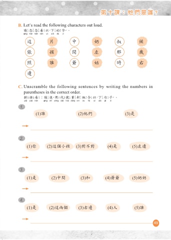 How many times did you read the sentences above out loud? C. Unscramble the following sentences by writing the numbers in