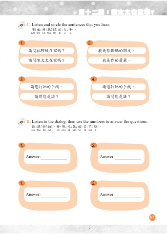 D. Listen to the dialog, then use the numbers to answer the questions.