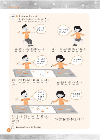 會 我畫頭 眼睛漢鼻 我畫身體和手。