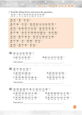 F. Read the dialog below and answer the questions.