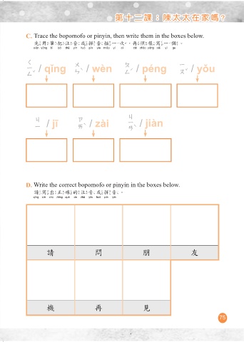C. Trace the bopomofo or pinyin, then write them in the boxes below.