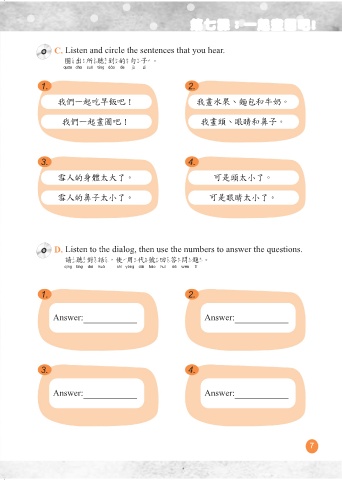 D. Listen to the dialog, then use the numbers to answer the questions.