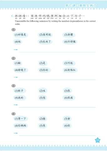 Unscramble the following sentences by writing the numbers in parentheses in the correct