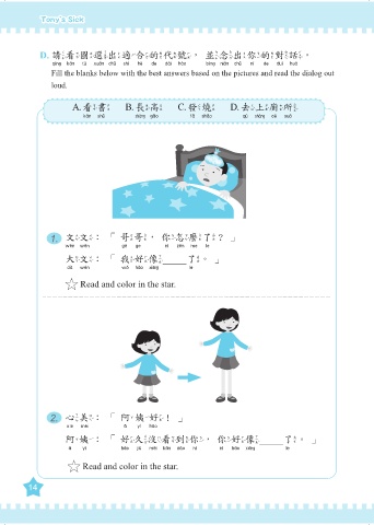 A. 看書 B. 長高 C. 發燒 D. 去上廁所