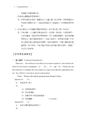 三、作者以將近七十的高齡才開始學習寫作,會不會太晚了呢?為什麼?
