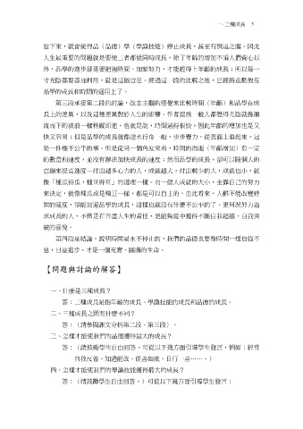 答:三種成長是指年齡的成長、學識技能的成長和品德的成長。