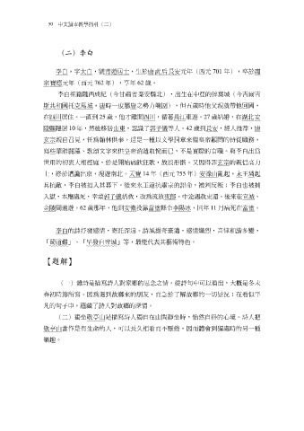 李白,字太白,號青蓮居士,生於唐武后長安元年(西元 701 年),卒於肅