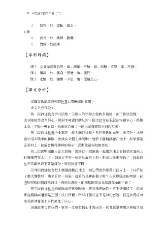 第二段敘述狄青令全軍在一座大廟前休息,自己恭敬地向神上香禮拜,求神