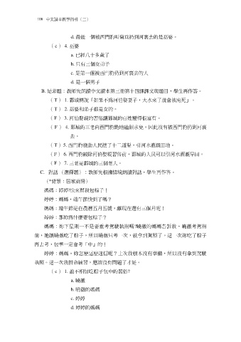 C. 對話 (選擇題):教師先根據情境朗讀對話,學生再作答。