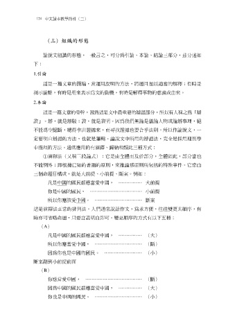 論說文組識的形態,一般言之,可分為引論、本論、結論三部分,茲分述如