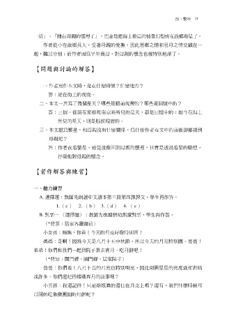 二、本文一共寫了幾個星天?哪些是眼前現實的?哪些是回憶中的?