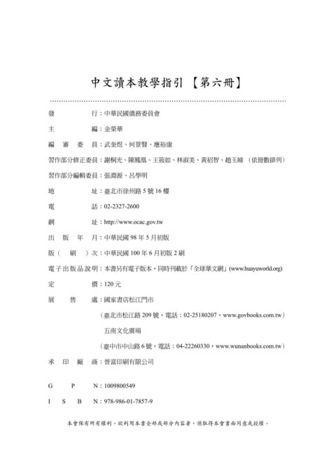 版 ( 刷 ) 次 : 中 華 民 國 100 年 6 月初版 2 刷
