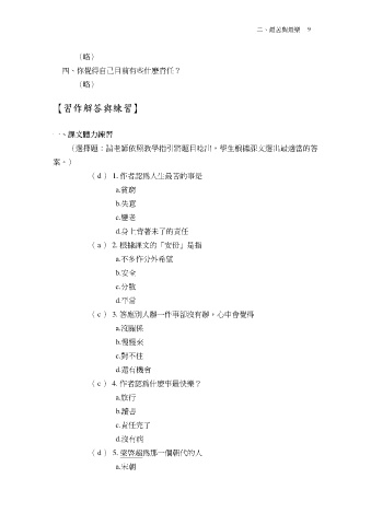 (選擇題:請老師依照教學指引將題目唸出,學生根據課文選出最適當的答