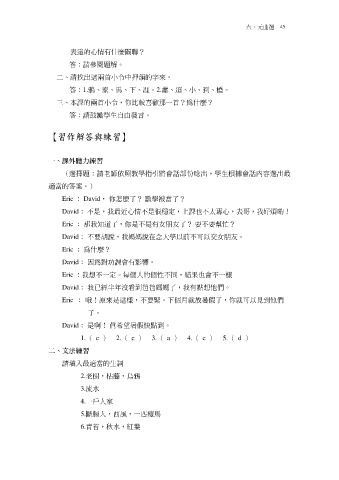 (選擇題:請老師依照教學指引將會話部份唸出,學生根據會話內容選出最