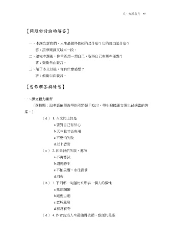 (選擇題:請老師依照教學指引將題目唸出,學生根據課文選出最適當的答