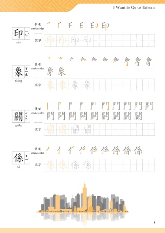 I Want to Go to Taiwan അන stroke order Ι 印 yìn ᄳο Ι Ι 印 印 അන 象 stroke order xiàng ᄳο 象 象 അන ᗫ 關 stroke order guān ᄳο ᗫ ᗫ 關 關 അන stroke order ڷ 係 xì ᄳο ڷ ڷ 係 係 9