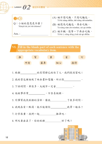 Ans. : ____________________ Tā bú è, xiǎng děng yíxià zài qù chīfàn.