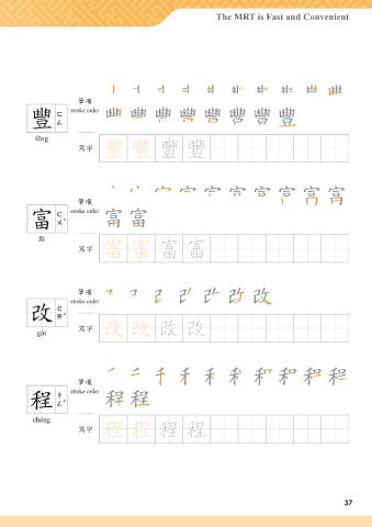 The MRT is Fast and Convenient അන ᔮ 豐 stroke order fēng ᄳο ᔮ ᔮ 豐 豐 അන బ 富 stroke order fù ᄳο బ బ 富 富 അන stroke order ҷ 改 gǎi ᄳο ҷ ҷ 改 改 അන 成 stroke order chéng ᄳο 程 程 37