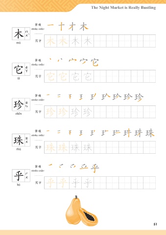 The Night Market is Really Bustling അන stroke order ˝ 木 mù ᄳο ˝ ˝ 木 木 അන stroke order ̴ 它 tā ᄳο ̴ ̴ 它 它 അන stroke order ޜ 珍 zhēn ᄳο ޜ ޜ 珍 珍 അන stroke order म 珠 zhū ᄳο म म 珠 珠 അන stroke order ˷ 乎 hū ᄳο ˷ ˷ 乎 乎 51