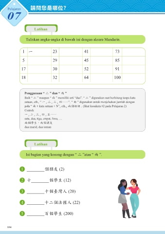 Isi bagian yang kosong dengan “ 二 ”atau “ 兩 ”.