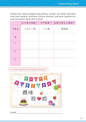 Pertama-tama, tuliskan tanggal ulang tahunmu, umurmu, dan hadiah ulang tahun