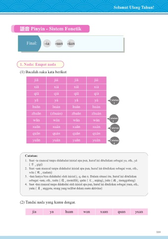 4. Saat -üan muncul tanpa didahului oleh inisial apa pun, huruf ini dituliskan sebagai yuan, cth.,