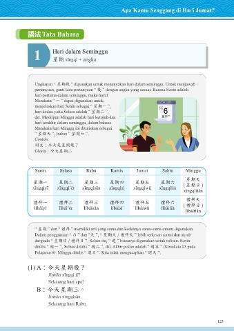 menjelaskan hari Senin sebagai “ 星期一 ”,