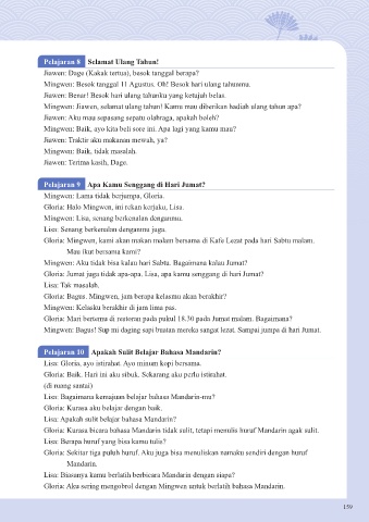 Mingwen: Aku tidak bisa kalau hari Sabtu. Bagaimana kalau Jumat?