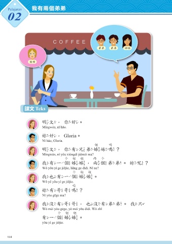 王明文 王明國 王爸 王媽 Gloria Wǒ yǒu yí ge jiějie, liǎng ge dìdi. Nǐ ne?