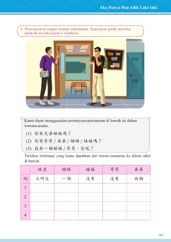 3. Wawancarai empat teman sekelasmu. Tanyakan pada mereka
