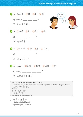 Adverbia“ 沒 ” digunakan untuk membuat bentuk negatif “ 有 ”. Bentuk pertanyaan afirmatif-