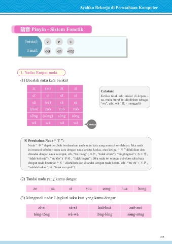 dengan nada keempat, “ 不 ” dilafalkan dan ditandai dengan nada kedua, cth., “bú shì” ( 不是 ,