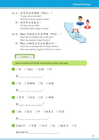 (4) A:Mary 和她先生住在哪裡(哪兒)? 加州