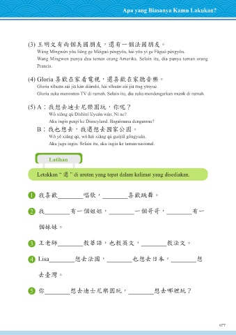 (4) Gloria 喜歡在家看電視,還喜歡在家聽音樂。