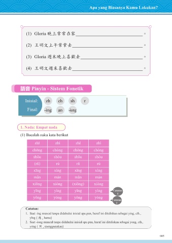 1. Saat -ing muncul tanpa didahului inisial apa pun, huruf ini dituliskan sebagai ying, cth.,