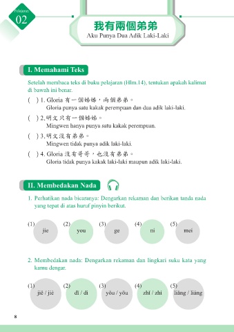 2. Membedakan nada: Dengarkan rekaman dan lingkari suku kata yang