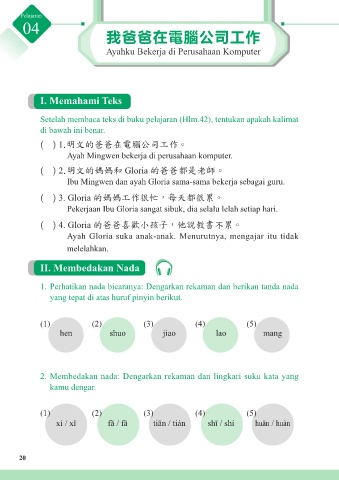 2. Membedakan nada: Dengarkan rekaman dan lingkari suku kata yang