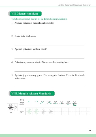 5. Ayahku juga seorang guru. Dia mengajar bahasa Prancis di sebuah