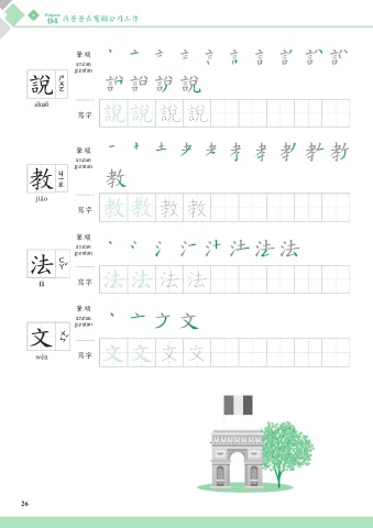 Pelajaran 04 我爸爸在電腦公司工作 筆順 urutan guratan 說 shuō 寫字 說說 說 說 筆順 urutan guratan 教 jiāo 寫字 教教 教 教 筆順 urutan guratan 法 fǎ 寫字 法法 法 法 筆順 urutan guratan 文 wén 寫字 文文 文 文 26 26