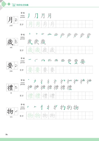 Pelajaran 祝你生日快樂 08 筆順 urutan 月 guratan yuè 寫字 月月 月 月 筆順 urutan guratan 歲 suì 歲歲 歲 歲 寫字 筆順 urutan 要 guratan yào 寫字 要要 要 要 筆順 urutan guratan 禮 lǐ 寫字 禮禮 禮 禮 筆順 urutan 物 guratan wù 寫字 物物 物 物 56