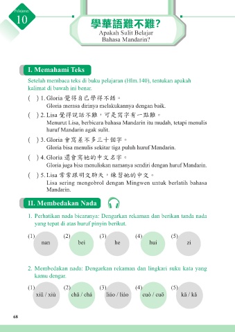 2. Membedakan nada: Dengarkan rekaman dan lingkari suku kata yang