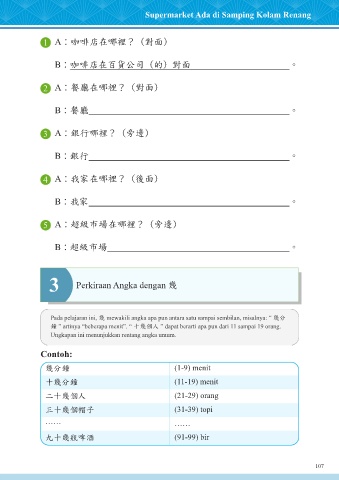Pada pelajaran ini, 幾 mewakili angka apa pun antara satu sampai sembilan, misalnya: “ 幾分