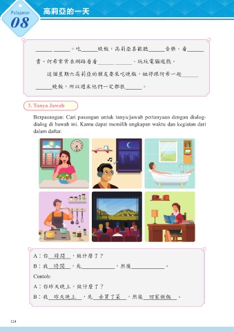 dialog di bawah ini. Kamu dapat memilih ungkapan waktu dan kegiatan dari