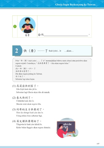 segera terjadi. Contohnya, “ 我快要畢業了。Aku akan segera lulus.”