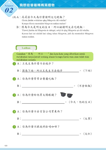Gunakan “ 因為……所以……” dan kata-kata yang diberikan untuk