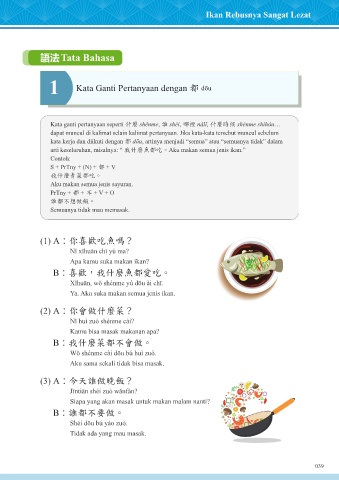 arti keseluruhan, misalnya: “ 我什麼魚都吃。Aku makan semua jenis ikan.”