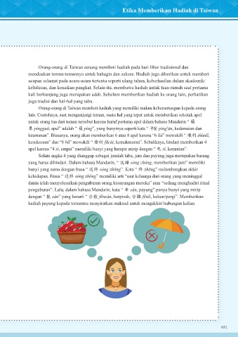 keamanan”. Biasanya, orang akan memberikan 6 atau 8 apel karena “6 liù” mewakili “ 順利 shùnlì,