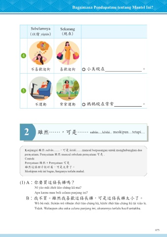 Konjungsi 雖然 suīrán……,可是 kěshì……muncul berpasangan untuk menghubungkan dua