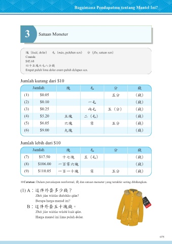 ※Catatan: Dalam percakapan nonformal, 錢 dan satuan moneter yang terakhir sering dihilangkan.