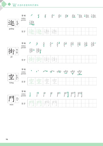 Pelajaran 02 我想給爸爸媽媽買禮物 筆順 urutan 逛 guratan guàng 逛逛 逛 逛 寫字 筆順 urutan guratan 街 jiē 寫字 街街 街 街 筆順 urutan guratan 空 kòng 寫字 空空 空 空 筆順 urutan guratan 門 mén 寫字 門門 門 門 16 16